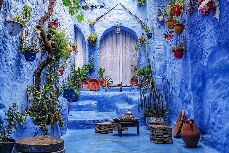Certaines villes ont le pouvoir de vous faire revenir, et celle surnommée la ville bleue ne fait pas exception. Située dans la région de Tanger-Tétouan, au nord-est du royaume chérifien, au pied des montagnes du Rif, elle se distingue par ses murs, rues, portes et bâtiments, tous peints en différentes teintes de bleu. Les raisons ? Selon une théorie, cette couleur repousserait les moustiques ou diminuerait la chaleur estivale ; selon une autre, elle symboliserait le ciel et le divin, rapprochant ainsi la ville de Dieu. Peu importe la véritable raison, elle reste un paradis pour les amateurs d’Instagram.