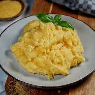 - Faites chauffer 60 cl de lait et versez 170 g de polenta instantanée. Faites cuire 5 min et ajoutez 50 g de pecorino haché, sel et poivre.